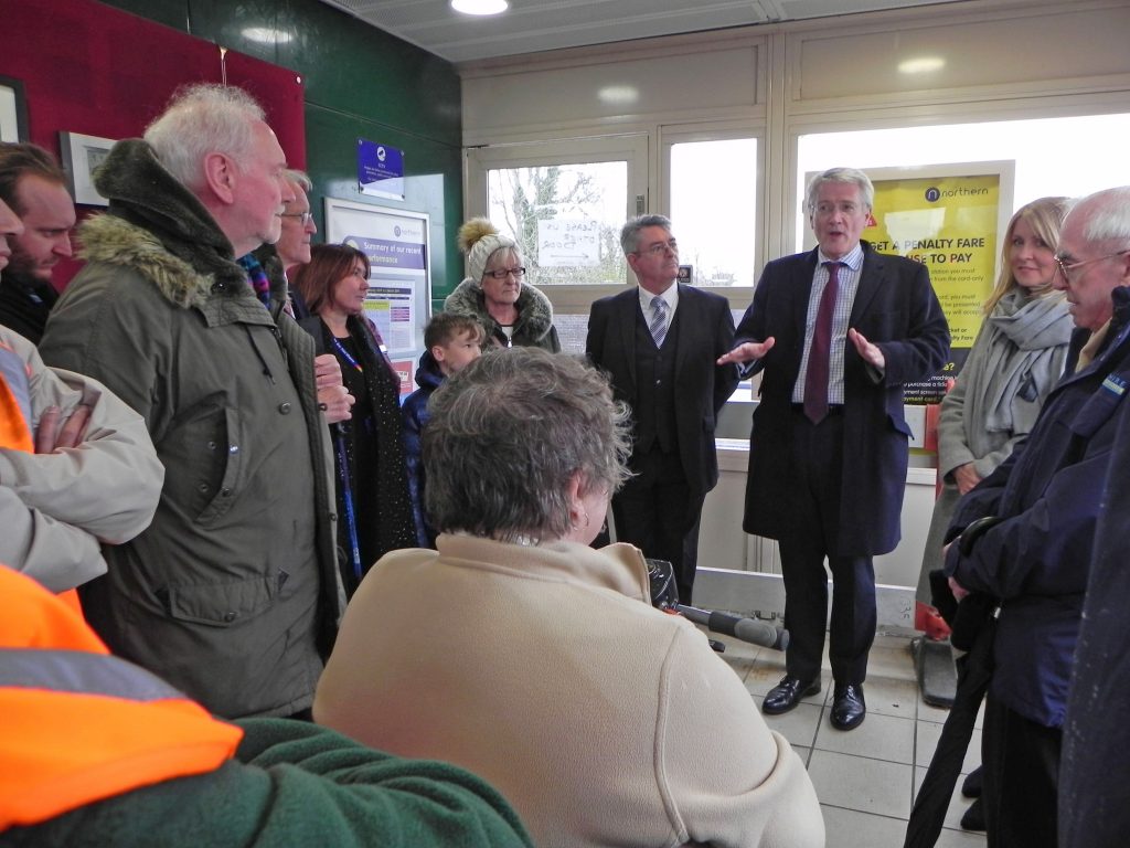 The 4th of April 2019 was the date on which the 20-year old dream of FoHS to provide step-free platform access at Handforth came true. Andrew Jones MP (Parliamentary Under Secretary of State at the Department of Transport with responsibility for railways) visited Handforth Station on that date to announce that our application (for a pair of lifts) to Access for All had proved successful.