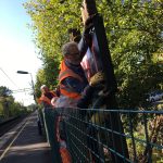 The work to prepare the mounting for the donated "Connolly running-in board" took many hours over a few days. Holes were dug, sleepers erected vertically and concrete poured, and battens were carefully attached - to make a strong yet flexible structure onto which the sign could be attached.